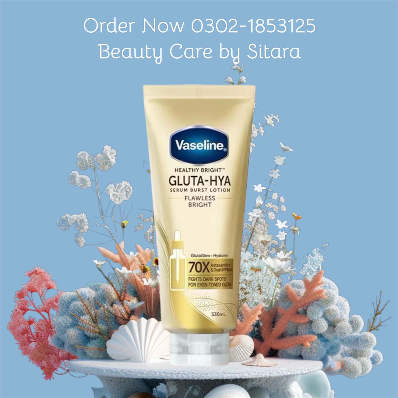 Vaseline Gluta – HYA Glow Serum 70X Serum Burst UV Lotion – FLAWLESS GLOW 330 ml – ( Gold )